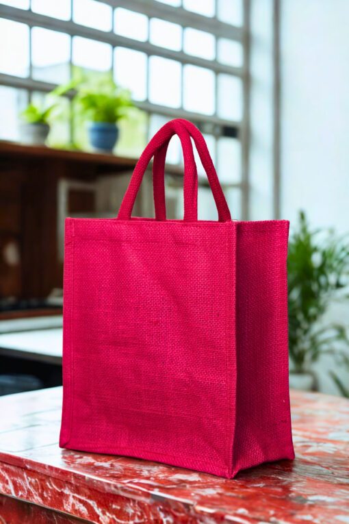 Add a splash of color to your eco-conscious lifestyle with this vibrant pink jute tote bag. Made from durable natural jute fiber, it offers a lightweight yet sturdy design for everyday essentials. With short, reinforced handles and a compact shape, it’s perfect for carrying lunch, small groceries, or gift items. Reusable, biodegradable, and effortlessly stylish – a smart step toward sustainable living.