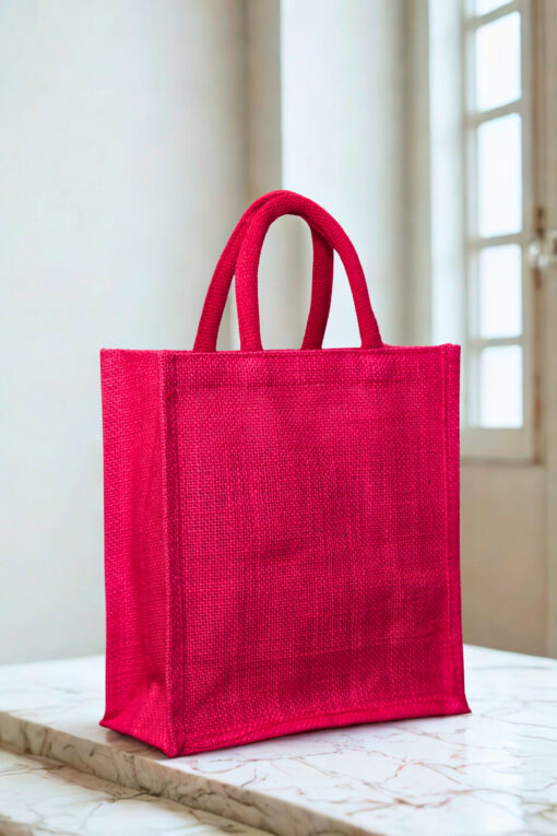 Chic and compact pink jute tote – reusable, biodegradable, and perfect for everyday carry.