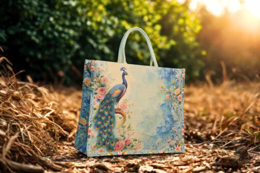 This handcrafted canvas tote bag showcases a majestic peacock surrounded by delicate floral patterns in soft watercolor hues. Perfect for nature lovers and those with an eye for artistic detail, it’s as practical as it is stylish. Carry your world in a bag that speaks of beauty and sustainability.
