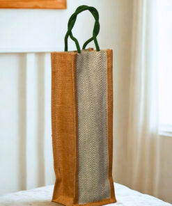 Carry your wine or gifting bottles in eco-style with our Herringbone Panel Jute Bottle Bag. Made from high-quality natural jute, this bag features a stylish green and white herringbone front panel that adds a touch of sophistication. The strong, twisted green handle ensures durability and easy portability. Perfect for gifting, retail packaging, or eco-conscious celebrations, this bag is reusable, biodegradable, and crafted for lasting performance. Add a rustic yet refined touch to any bottle presentation.
