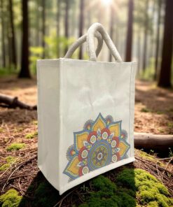 Stylish eco-friendly canvas tote bag featuring a vibrant mandala print, perfect for everyday use, gifting, or eco-conscious shopping.