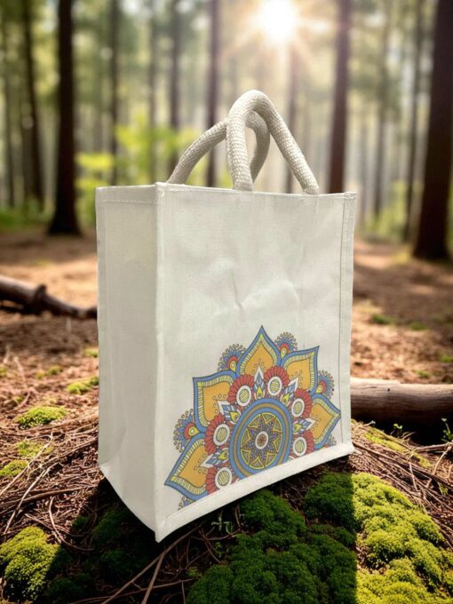 Stylish eco-friendly canvas tote bag featuring a vibrant mandala print, perfect for everyday use, gifting, or eco-conscious shopping.