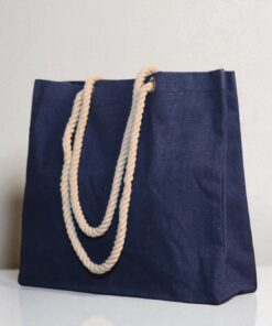 Navy Blue Jute Tote Bag with Rope Handles