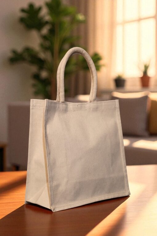 Minimalist and durable plain canvas tote bag with strong handles, perfect for everyday use and custom printing.