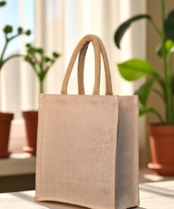 Small eco-friendly juco tote bag with padded handles and minimalist design—perfect for daily carry or gifting.